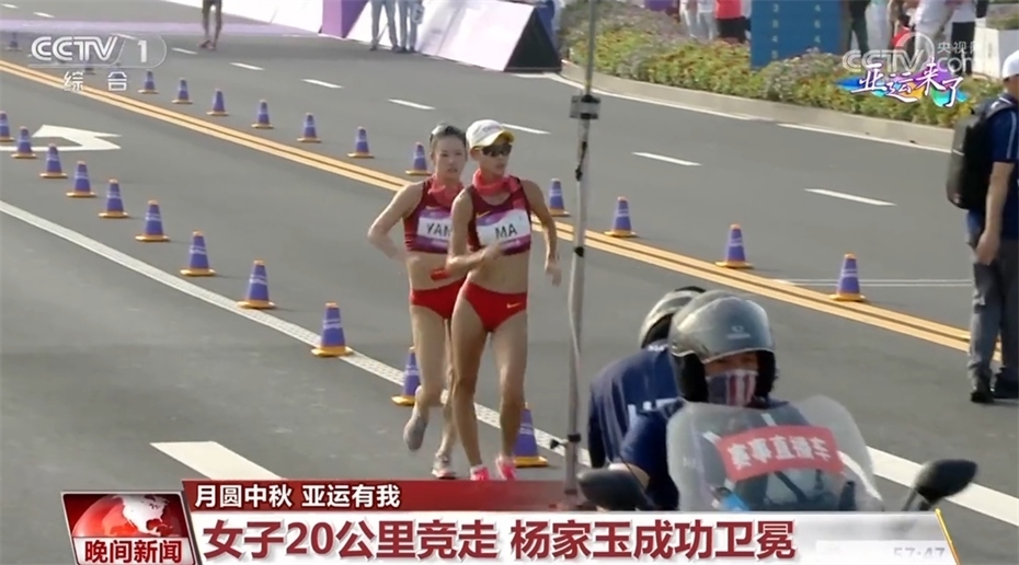 隨后出發(fā)的女子20公里競走上演精彩一幕,兩位中國選手在終點前展現(xiàn)了世界級較量,最終,該項目世界紀錄保持者楊家玉成功衛(wèi)冕,馬振霞獲得亞軍。