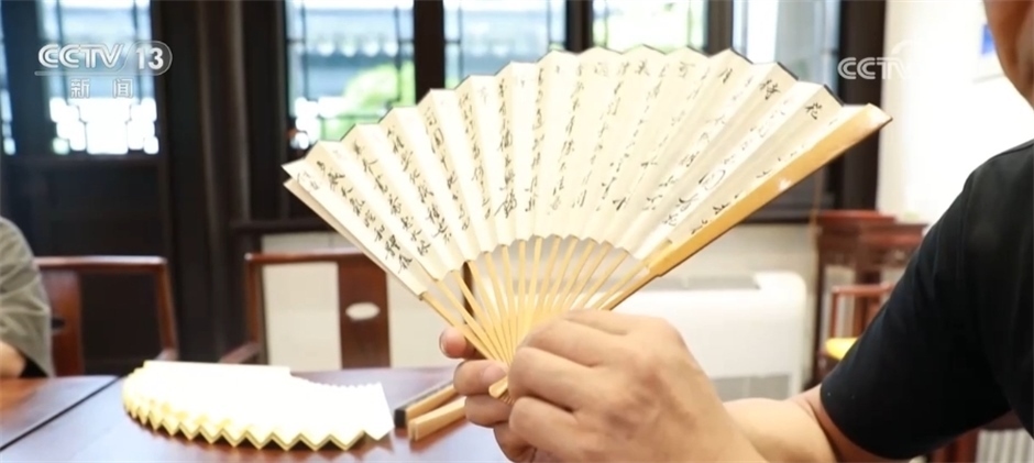 作為非遺體驗項目之一,蘇州折扇蘊含著獨特的文化底蘊,彰顯了蘇扇藝人的精巧手工。傳統(tǒng)的折扇要經(jīng)過遷、削、烤、磨等七十二道工序才能制成,而蘇州折扇靈巧的開合離不開兩片大骨及根根小骨,因此穿扇骨也是折扇制作中重要的一環(huán)。