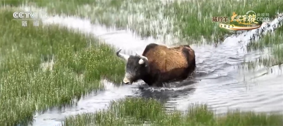 記者甚至拍到了成群的野牦牛在水中游嬉過河的畫面。高原的夏日里,趟過清涼的河水,想必也算是牛生的一樁美事。牛氣哄哄的野牦牛,此刻似乎多了幾分愜意,少了幾分“高原霸主”的威嚴(yán)。
