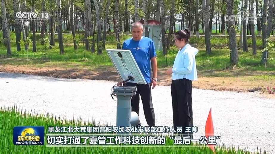 在北大荒普陽農(nóng)場第四管理區(qū)的水稻種植地塊,一套集災(zāi)情氣象、土壤墑情、病蟲害和苗情長勢監(jiān)測于一體的農(nóng)情監(jiān)測設(shè)備,正在24小時(shí)不間斷地對水稻生長進(jìn)行全面監(jiān)控。
