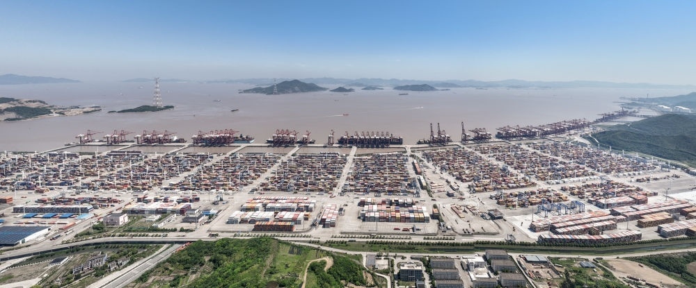 鳥瞰寧波舟山港穿山港區(qū)(無(wú)人機(jī)照片,5月9日攝)。新華社記者 翁忻旸 攝