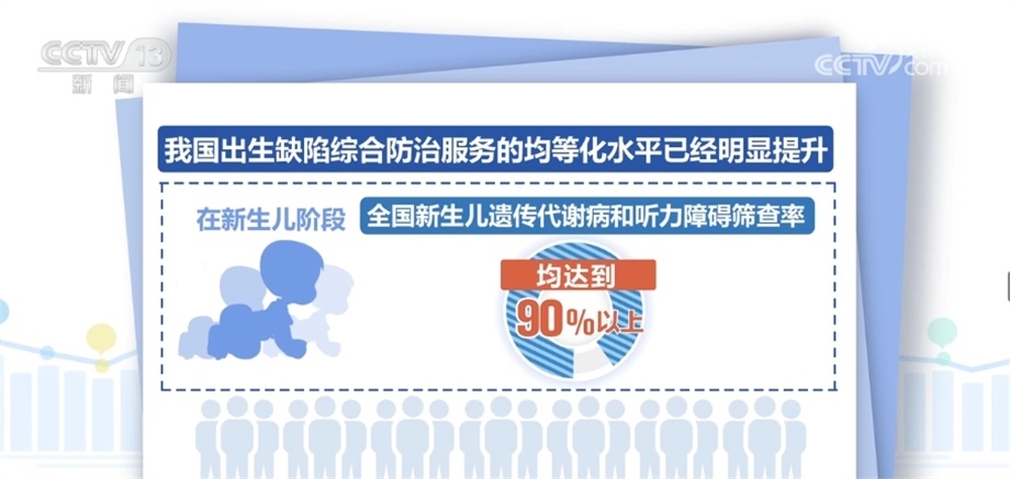 2009年以來,累計(jì)為1.3億名農(nóng)村生育婦女補(bǔ)服葉酸;全國(guó)婚檢率從2011年的41.9%提高至2021年的70.9%;全國(guó)產(chǎn)前篩查率從2011年的22.7%提高至2021年的85.7%;全國(guó)新生兒遺傳代謝病和聽力障礙篩查率均達(dá)到90%以上。建立起出生缺陷三級(jí)防治體系。