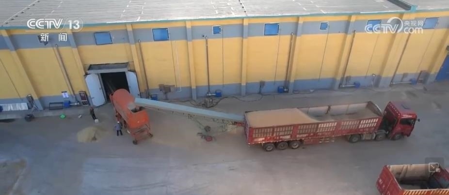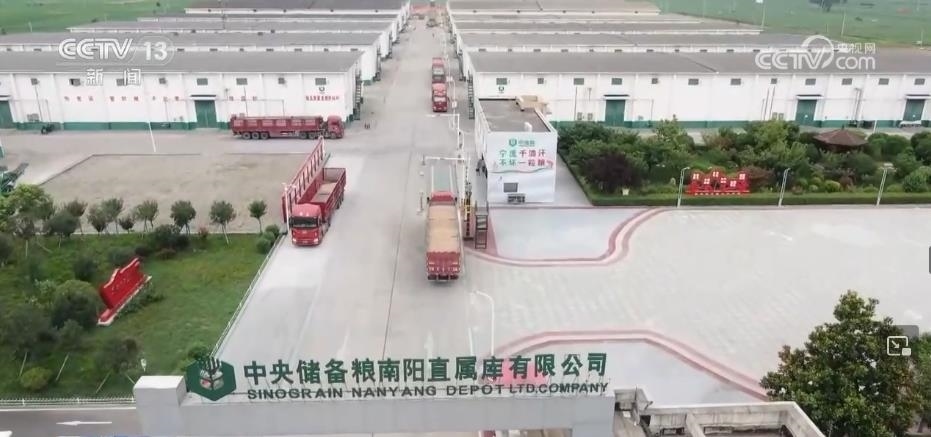 在一座座糧庫間,記者看到滿載小麥的一輛輛卡車正排著隊等待卸糧進倉。