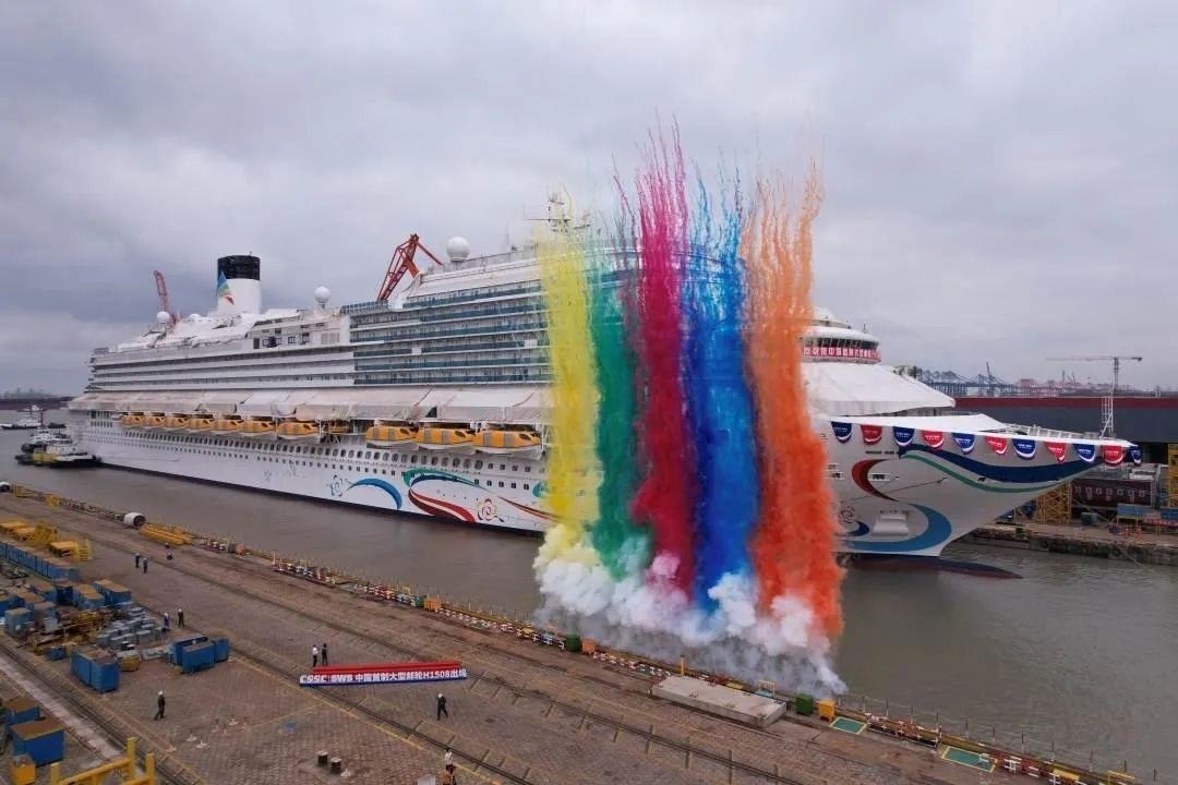 △2023年6月6日,首艘國產(chǎn)大型郵輪愛達 魔都號在上海外高橋造船廠完成塢內系列試驗后正式出塢。