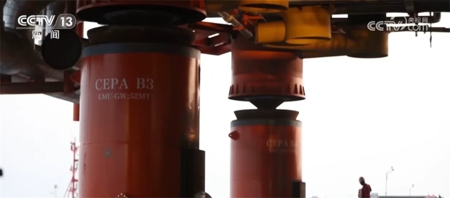 ?????? 海油工程渤中19-6浮托負責人 邱煒:我們通常采用注水壓載的方式緩慢轉移重量,具體哪些艙需要注水、每個艙注多少水,都需要經(jīng)過精確計算。我們自主研發(fā)了這一套減震緩沖裝置,可以巧妙地將萬鈞之力平穩(wěn)地坐在基座上。