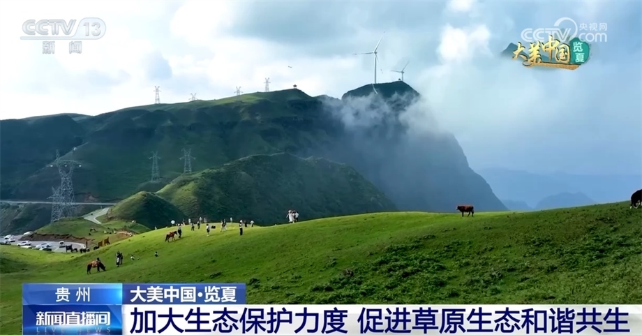 跟隨鏡頭,我們來到貴州六盤水盤州市的烏蒙大草原。眼下,正值盛夏的烏蒙大草原水草豐茂、碧綠如茵、牛羊成群,從空中俯瞰,縹緲的云霧將草原裝扮得十分夢幻。烏蒙大草原最高海拔2857米。因?yàn)榈靥幐吆0蔚貐^(qū),這里的氣候適宜,吸引了許多游客來到這里避暑旅游。近年來,當(dāng)?shù)丶哟髮?duì)村民和游客的宣傳引導(dǎo)力度,并采取措施限制過度放牧,嚴(yán)厲打擊采挖野生高原矮杜鵑和駕車碾壓草地等行為,保護(hù)草原生態(tài)平衡,維護(hù)生物多樣性,讓烏蒙大草原生態(tài)持續(xù)向好,實(shí)現(xiàn)人與自然和諧共生。