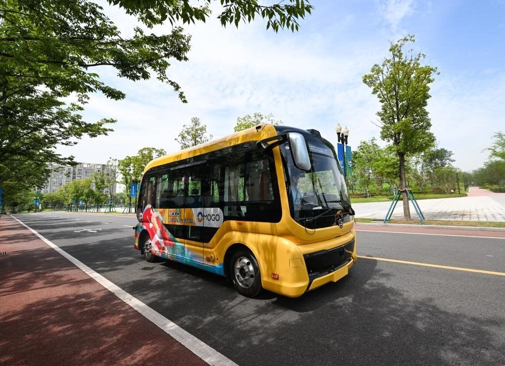 搭載“車路云一體化”系統(tǒng)的自動(dòng)駕駛巴士