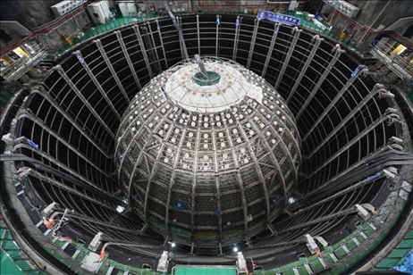 圖為江門(mén)中微子地下實(shí)驗(yàn)室中微子探測(cè)裝置。(中國(guó)科學(xué)院高能物理研究所供圖)