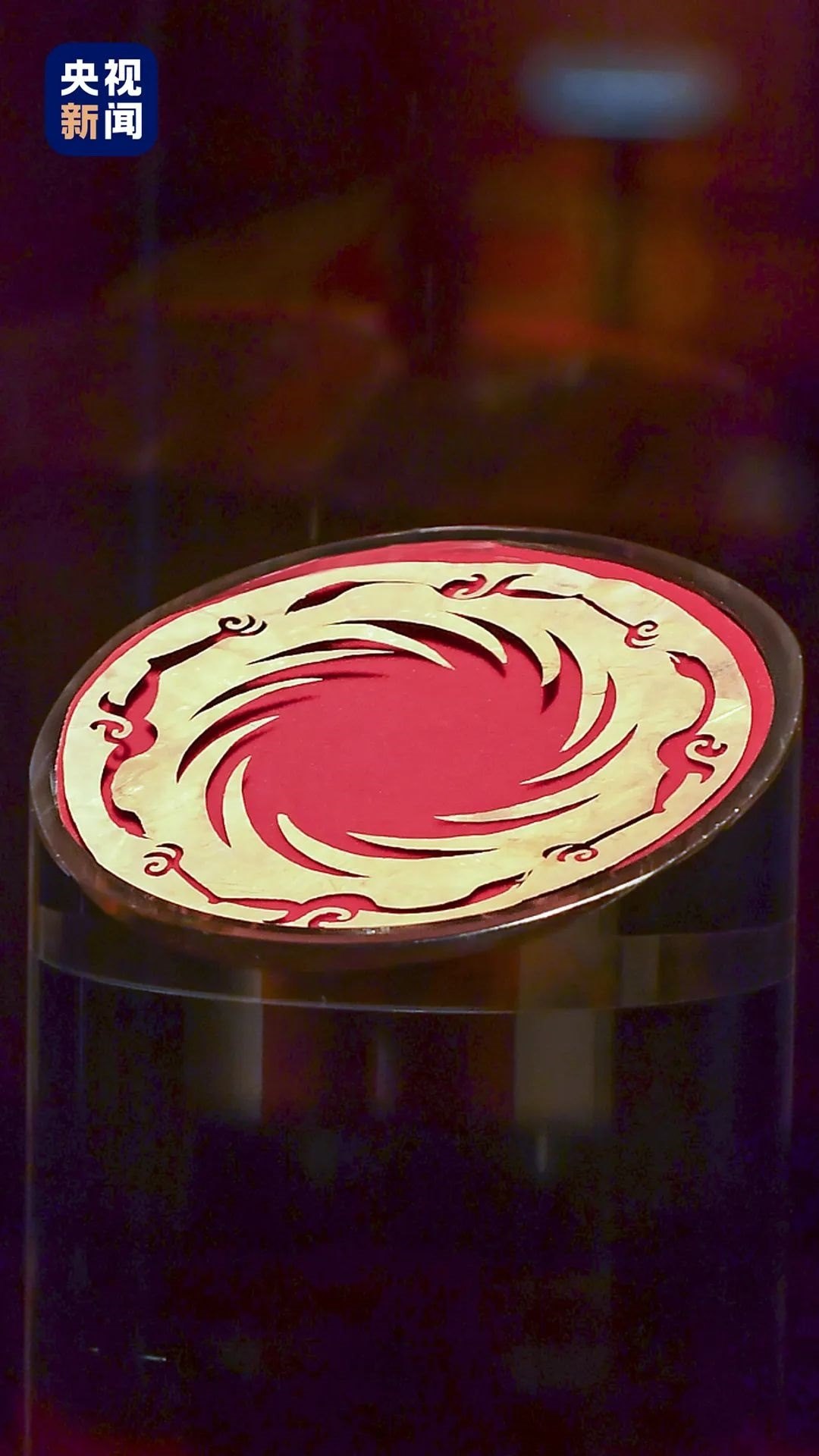 △綬帶正反面主色分別為藍(lán)色、紅色,融入芙蓉花、太陽神鳥、棋盤格等元素,在自然光線下反射出不同的色彩。
