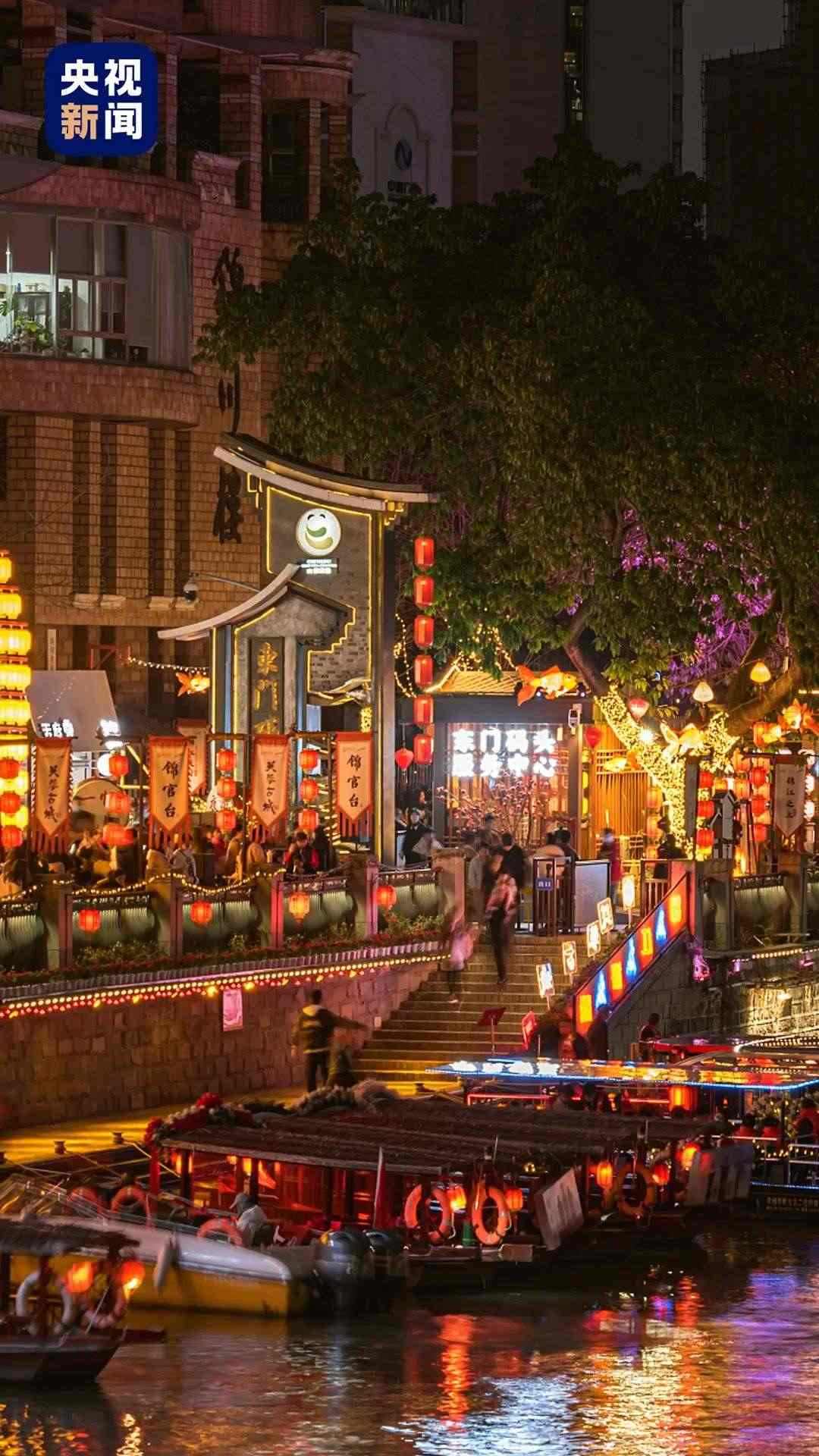 △成都東門碼頭錦江水上非遺表演,皮影戲、舞獅、腰鼓等輪番上演。