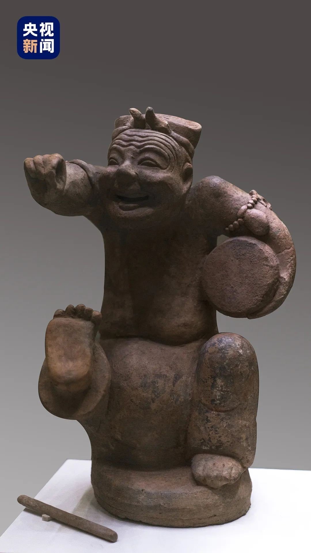 △東漢擊鼓說唱俑于1957年出土于成都市天回山東漢崖墓,現(xiàn)藏于中國國家博物館。
