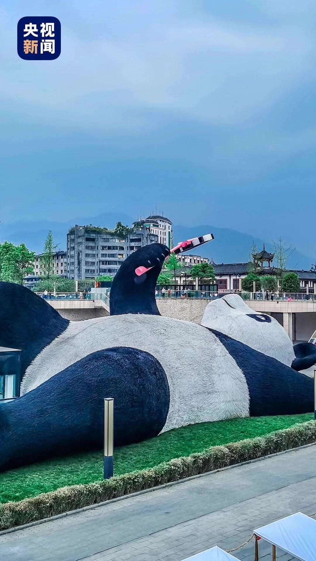 △都江堰水文化廣場的“自拍熊貓”