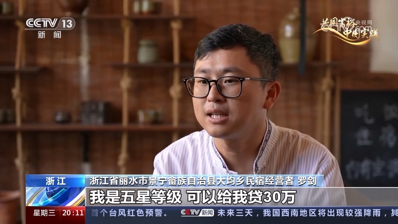 浙江省麗水市景寧畬族自治縣大均鄉(xiāng)民宿經(jīng)營(yíng)者 羅劍:以我的個(gè)人(生態(tài)信用)等級(jí),我是五星等級(jí),可以給我貸30萬(wàn),而且我了解了年利率,它是3.85%,算起來是最低的,所以說我就去貸了。