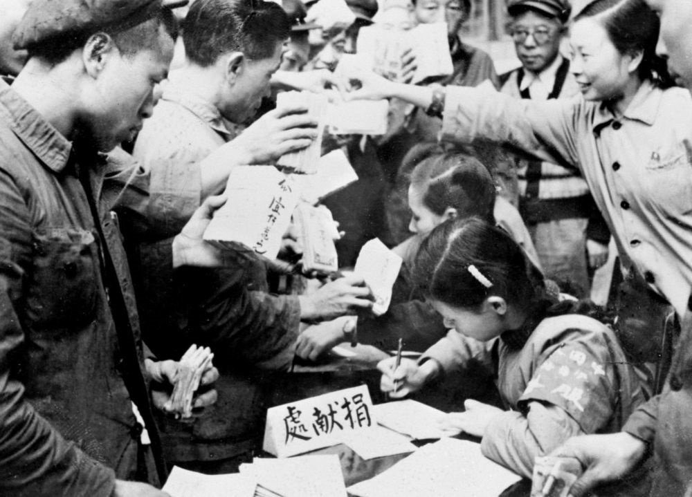 ——知識(shí)分子為支援前線(xiàn)的愛(ài)國(guó)事業(yè)鼓與呼,醫(yī)務(wù)工作者組織大批醫(yī)療隊(duì)奔赴前線(xiàn),“為最可愛(ài)的人購(gòu)買(mǎi)飛機(jī)大炮”的捐款熱潮席卷了每一個(gè)社會(huì)層面、每一個(gè)社會(huì)角落……