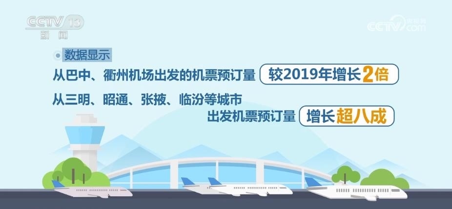 2023年暑運期間,三四線航空市場開始顯現(xiàn)出熱度。數(shù)據(jù)顯示,從巴中、衢州機場出發(fā)的機票預訂量較2019年增長兩倍。從三明、昭通、張掖、臨汾等城市出發(fā)機票預訂量增長超八成。