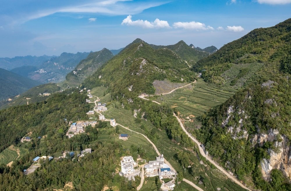 這是7月27日拍攝的木者村“摸石谷”中建成的“三?!迸_(tái)地。新華社記者 陳欣波 攝