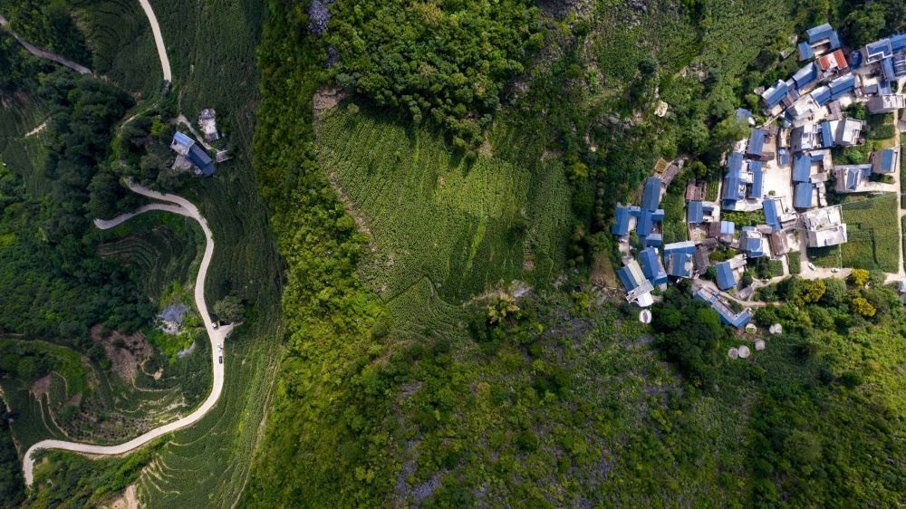 這是7月26日拍攝的西疇縣山間公路,右側(cè)這條是巖頭村村民小組長(zhǎng)李華明帶領(lǐng)群眾修建的最后一公里進(jìn)村道路。新華社記者 陳欣波 攝