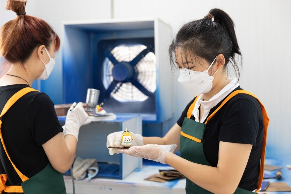 7月27日,工作人員在西疇湯谷文化創(chuàng)意產(chǎn)業(yè)園為產(chǎn)品噴漆。新華社記者 呂帥 攝
