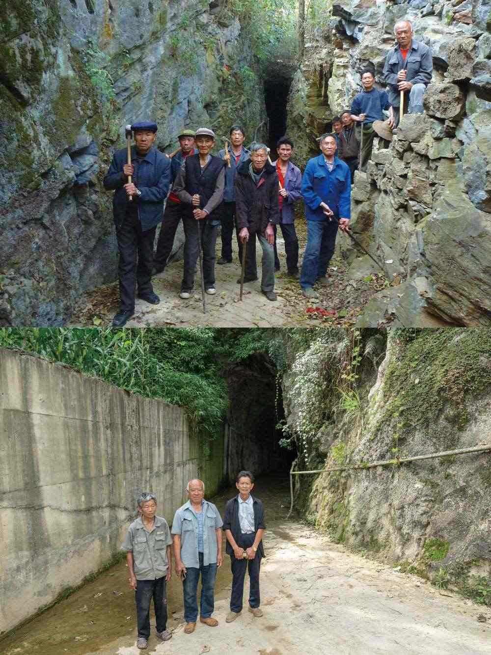 這首生命樂(lè)章的序曲是“人定勝天”:劉家塘村四面環(huán)山,地勢(shì)低洼,多雨季節(jié)洪水泛濫,田地絕收。1962年,村黨支部決定開鑿隧洞。隨后,村民開始了“驚人之舉”——全村男女老少齊上陣,以鐵錘、鋼釬為主要工具,歷時(shí)近半個(gè)世紀(jì),鑿?fù)烁?.5米、寬1.5米,全長(zhǎng)300米的穿山隧洞,徹底解決了水患。后來(lái),這個(gè)隧洞被命名為“勝天洞”。