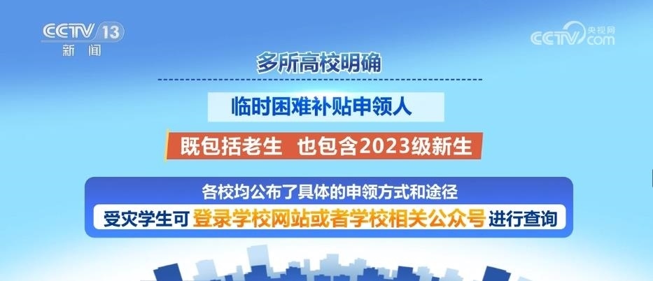 多所高校明確,臨時(shí)困難補(bǔ)貼申領(lǐng)人既包括老生,也包含2023級(jí)新生。各校均公布了具體的申領(lǐng)方式和途徑,受災(zāi)學(xué)生可登錄學(xué)校網(wǎng)站或者學(xué)校相關(guān)公眾號(hào)進(jìn)行查詢。其中,南開大學(xué)、北京航空航天大學(xué)等高校公布了資助熱線。上海交通大學(xué)、西北工業(yè)大學(xué)等高校提出,需要幫助的學(xué)生可第一時(shí)間聯(lián)系輔導(dǎo)員。華東師范大學(xué)提出需要幫助的同學(xué)可在學(xué)生資助管理中心網(wǎng)站后臺(tái)申請(qǐng)臨時(shí)性困難補(bǔ)助。