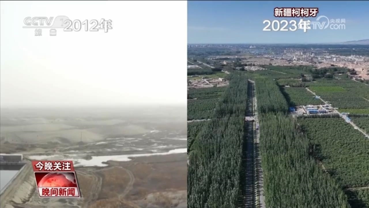 新疆阿克蘇地區(qū)的柯柯牙曾經(jīng)是南疆風(fēng)沙策源地之一。30年來(lái),面對(duì)柯柯牙缺水和土壤鹽堿含量高的情況,當(dāng)?shù)叵到y(tǒng)推進(jìn)山水林田湖草沙一體化保護(hù)和系統(tǒng)治理,柯柯牙綠化工程造林共計(jì)120.26萬(wàn)畝,累計(jì)栽植樹木1400萬(wàn)株,荒漠變?yōu)榱趾?,最終在貧瘠的戈壁荒漠中,造就了一道“綠色長(zhǎng)城”。