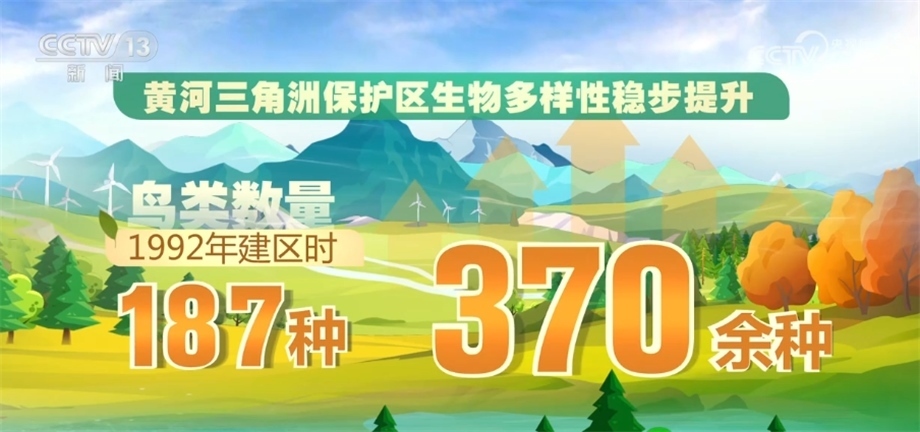 黃河干流在2022年首次全線達到Ⅱ類水質(zhì),隨著黃河流域生態(tài)保護和高質(zhì)量發(fā)展的不斷推進,黃河流域植被覆蓋度提升,“綠線”向西移動約300公里。目前,黃河三角洲保護區(qū)生物多樣性穩(wěn)步提升,鳥類數(shù)量由1992年建區(qū)時的187種增加到了現(xiàn)在的370余種。