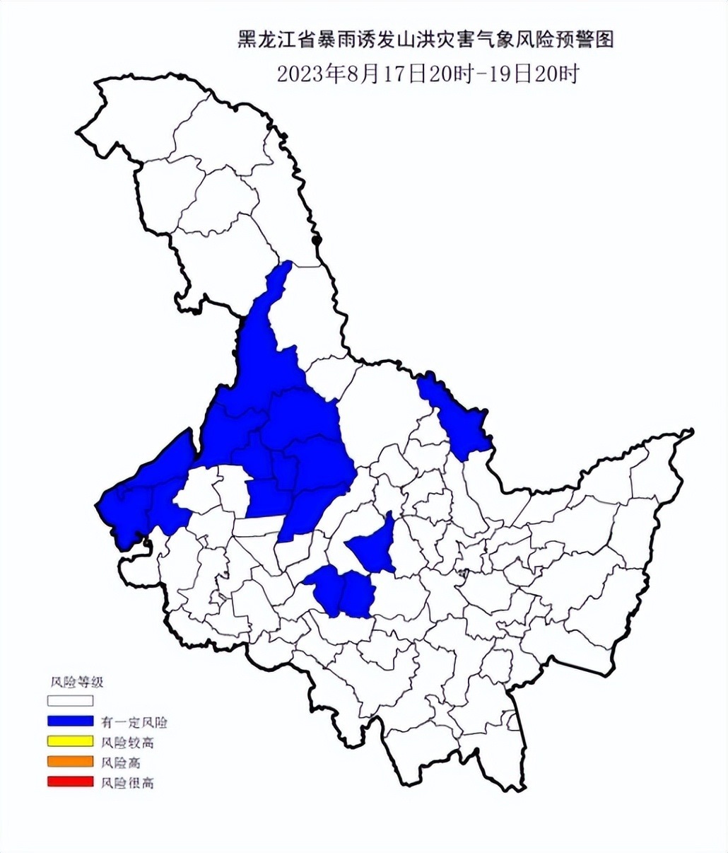 黑龍江省防汛抗旱指揮部辦公室、黑龍江省水利廳、黑龍江省氣象局8月17日20時(shí)聯(lián)合發(fā)布藍(lán)色山洪災(zāi)害氣象風(fēng)險(xiǎn)預(yù)警:?