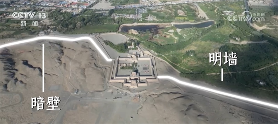 嘉峪關(guān)關(guān)城景區(qū)講解員 馬雪:站在這個(gè)地方,大家就可以看到嘉峪關(guān)關(guān)城從這里向南邊一直延伸出去了一道邊墻,這一段城墻因?yàn)楸晃鬟叺臄橙艘谎劬涂梢园l(fā)現(xiàn),所以稱之為“明墻”,還有一道防線,我們現(xiàn)在看不見,它叫作“暗壁”,從東柵門的烽火臺(tái)處一直延伸到黑山的半山腰,人無法攀登的地方。那這一段“明墻暗壁”的修建,屬于嘉峪關(guān)的雙重防線,體現(xiàn)了中國(guó)古代工匠的智慧。