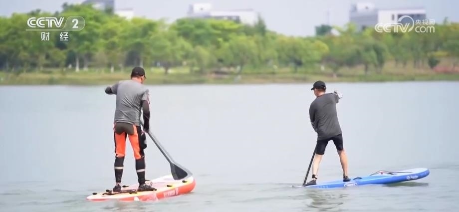 除此之外,不少市民會選擇專門的機(jī)構(gòu),體驗(yàn)更為多樣的水上運(yùn)動。在浙江臨安的一家水上運(yùn)動中心,既可以體驗(yàn)?zāi)ν型Я愕浇俅a的動力加速度,也可以站在槳板上,悠然地穿梭于湖泊之上。運(yùn)動中心負(fù)責(zé)人告訴記者,目前機(jī)構(gòu)包括水上摩托、尾波沖浪、槳板等11個水上項(xiàng)目。