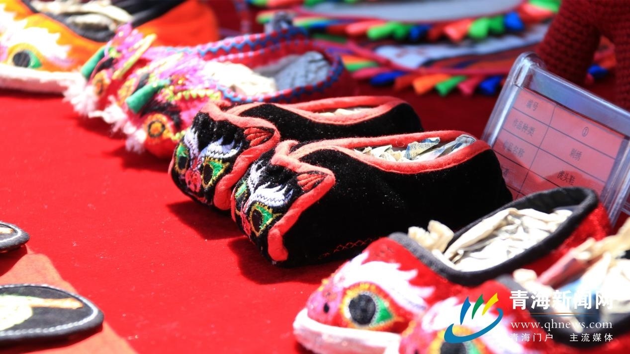 村民將自己繡的民族風(fēng)格產(chǎn)品在村路兩旁展覽銷售。謝青玉 攝