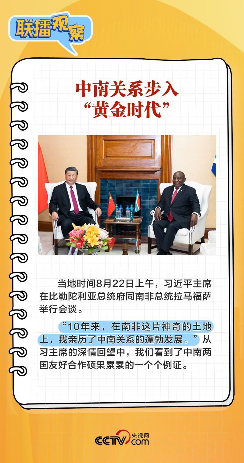 8月22日上午,在同南非總統(tǒng)拉馬福薩舉行會談時,習主席表示:“中南關(guān)系之所以好、中南友誼之所以深,關(guān)鍵在于兩國兩黨在各自發(fā)展道路上休戚與共,結(jié)下了同志加兄弟的深厚友誼?!?/p>