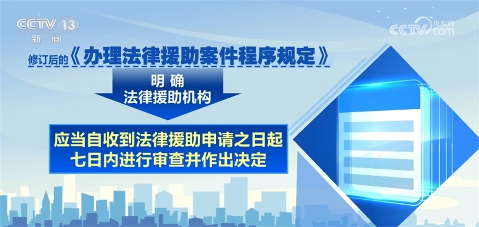 《程序規(guī)定》明確法律援助機(jī)構(gòu)應(yīng)當(dāng)自收到法律援助申請(qǐng)之日起七日內(nèi)進(jìn)行審查并作出決定。
