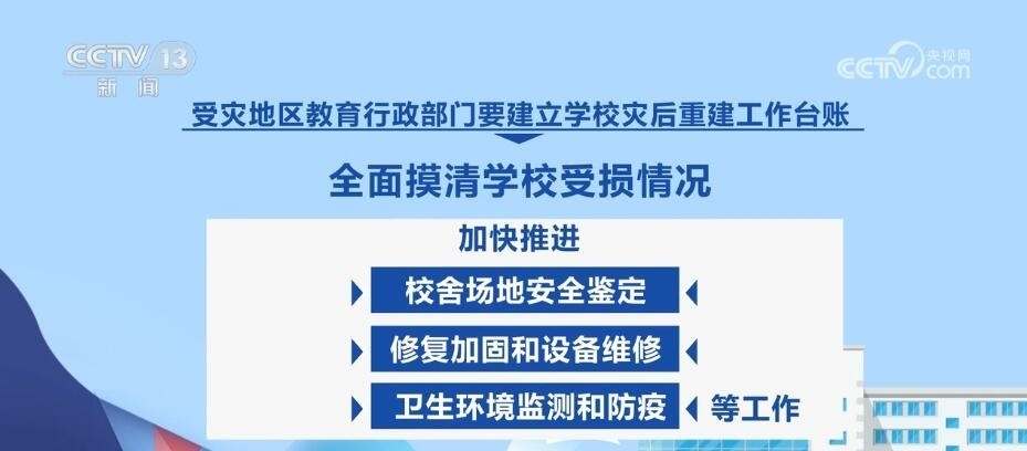 教育部強調(diào),要慎終如始做好災(zāi)后恢復(fù)重建各項工作,穩(wěn)慎做好受災(zāi)師生安置慰問、補償救助等工作。受災(zāi)地區(qū)教育行政部門要建立學(xué)校災(zāi)后重建工作臺賬,全面摸清學(xué)校受損情況,加快推進校舍場地安全鑒定、修復(fù)加固和設(shè)備維修、衛(wèi)生環(huán)境監(jiān)測和防疫等工作。確實在開學(xué)前不能完成災(zāi)后重建的,要立足實際采取臨時轉(zhuǎn)移就學(xué)等舉措,全力保障正常開學(xué)。各地各校要一體推進防汛救災(zāi)和校園安全治理,健全校園安全常規(guī)檢查機制,持續(xù)深入排查整治風(fēng)險隱患,有效防范原發(fā)、誘發(fā)性自然災(zāi)害和次生安全風(fēng)險。