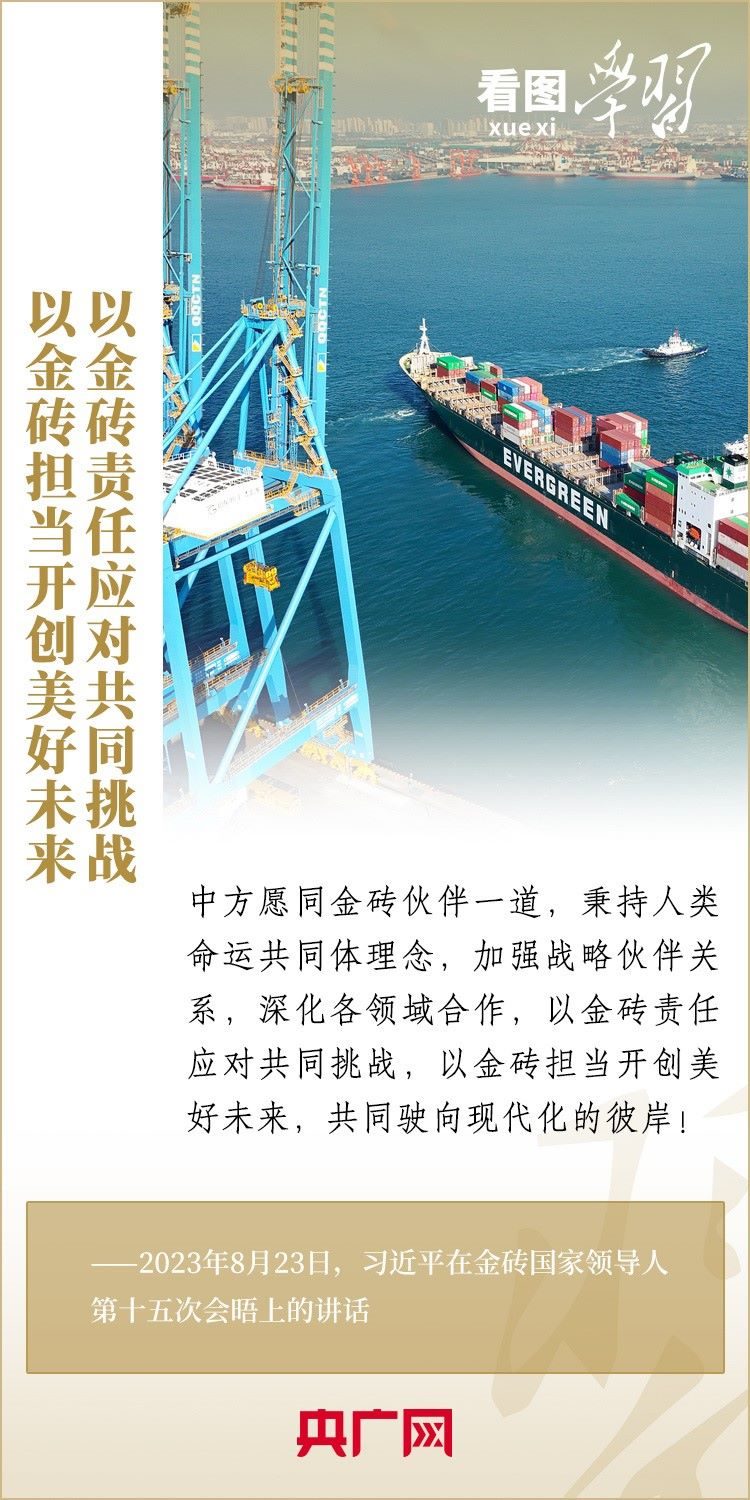 當(dāng)?shù)貢r(shí)間8月23日,習(xí)近平主席出席金磚國家領(lǐng)導(dǎo)人第十五次會(huì)晤并發(fā)表重要講話,強(qiáng)調(diào)金磚國家要秉持開放包容、合作共贏的金磚精神,以金磚責(zé)任應(yīng)對共同挑戰(zhàn),以金磚擔(dān)當(dāng)開創(chuàng)美好未來。一起來學(xué)習(xí)!
