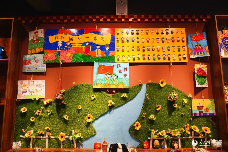 歇春園社區(qū)紅石榴之家內(nèi),社區(qū)小朋友創(chuàng)作的民族團結(jié)主題作品引人駐足。人民網(wǎng)記者 楊啟紅攝