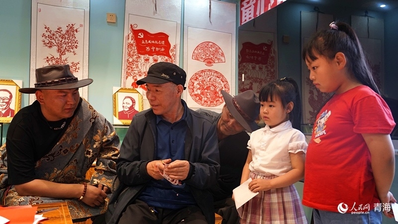 “紅紙對折,再對折,先剪出大概輪廓,再剪蝴蝶的觸角,剪刀要慢……”青海省海南藏族自治州貴德縣河陰鎮(zhèn)歇春園社區(qū)紅石榴之家內(nèi),剪紙藝人楊成君正帶領(lǐng)社區(qū)幾名小孩學(xué)習(xí)剪紙,幾位藏族居民也在旁邊饒有興趣地旁觀。