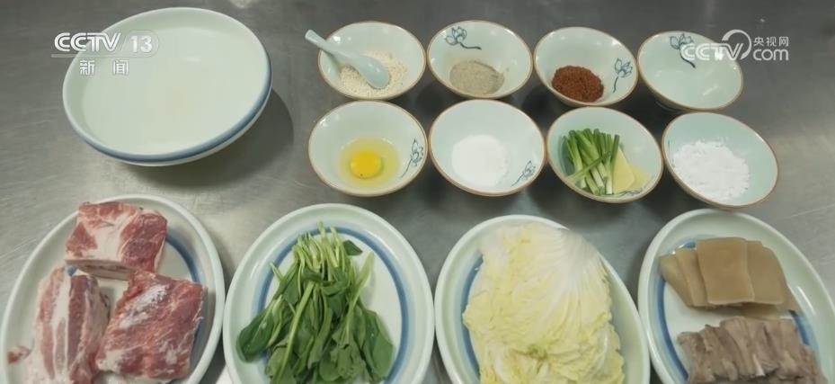 四肥六瘦的五花肉,切丁拌料,再加上蝦子摔打上勁兒,捏成團,放入提前準備好的骨湯,這就開火燉了。此時,距離列車到達還有2個小時。