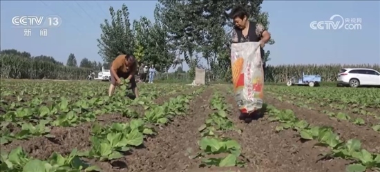 小義和莊村黨支部書記 王宇:我村在8月12號(hào)(改)種的白菜是240畝,水、肥、藥必須保障,在10月25號(hào)左右就到了收獲(期),現(xiàn)在每家每戶白菜的長(zhǎng)勢(shì)都挺好。