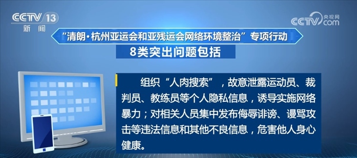 央視網(wǎng)消息:記者昨天(8月28日)從中央網(wǎng)信辦獲悉,為做好杭州亞運(yùn)會(huì)和亞殘運(yùn)會(huì)保障工作,決定自8月28日至10月29日開(kāi)展“清朗·杭州亞運(yùn)會(huì)和亞殘運(yùn)會(huì)網(wǎng)絡(luò)環(huán)境整治”專項(xiàng)行動(dòng)。專項(xiàng)行動(dòng)將圍繞賽事舉辦,集中整治散布虛假信息、片面、歪曲傳播突發(fā)事件信息等8類突出問(wèn)題。
