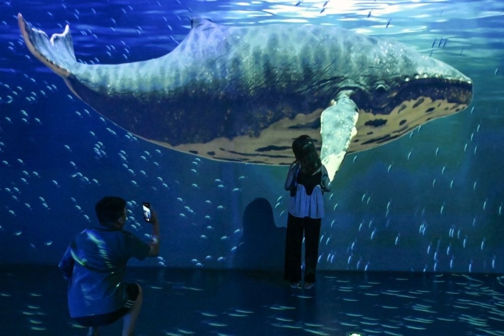 正值大型沉浸式互動(dòng)數(shù)字藝術(shù)作品《鯨奇物語》光影藝術(shù)展首展上映,國(guó)家海洋博物館里人頭攢動(dòng)。