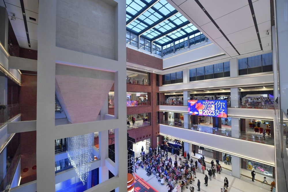 原天津第一熱電廠的煤斗經(jīng)過改造成為天津金茂匯商場(chǎng)內(nèi)的裝飾。新華社記者 孫凡越 攝