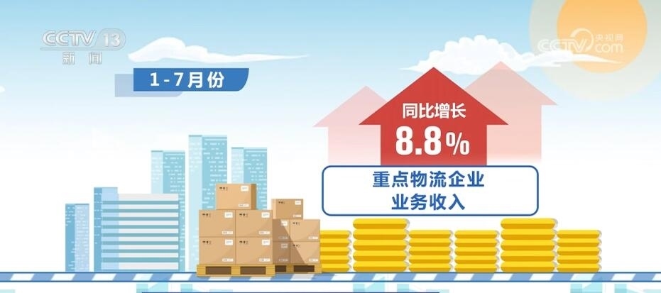 1—7月份重點物流企業(yè)業(yè)務收入同比增長8.8%
