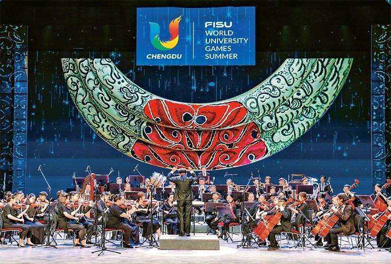 圖為2023年7月30日,音樂家在為參加成都大運(yùn)會(huì)的各代表團(tuán)成員演奏《瑤族舞曲》。 新華社記者 沈伯韓/攝