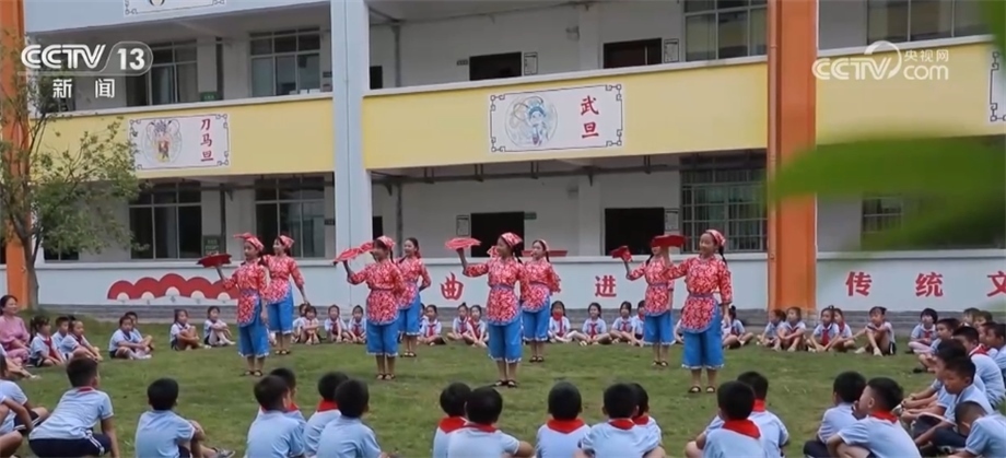在湖南省永州市蘋洲小學(xué),一場(chǎng)花鼓戲表演正在進(jìn)行。學(xué)生們化身“小戲骨”,把“唱念做打”基本功表現(xiàn)得淋漓盡致?;ü膽蚴菄?guó)家非物質(zhì)文化遺產(chǎn)之一,今年暑假,永州市蘋洲小學(xué)將學(xué)唱花鼓戲作為學(xué)生的暑假作業(yè)之一,學(xué)生們自行組隊(duì)進(jìn)行排練,開學(xué)第一課就成了孩子們展示暑假作業(yè)的表演專場(chǎng)。