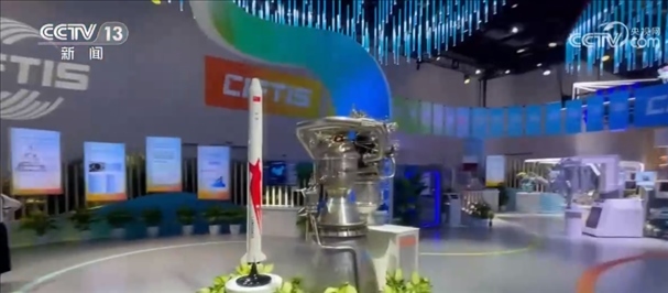 總臺記者 王豐:這片區(qū)域是綜合展的一個成就展的專題,這里集中展示了我國在服務業(yè)擴大開放和服務貿(mào)易創(chuàng)新發(fā)展方面所取得的一系列成就。比如說這個,這是我國民營企業(yè)藍箭航天自主研發(fā)的朱雀二號火箭,旁邊是自主研發(fā)的天鵲發(fā)動機。今年7月12日,朱雀二號成功發(fā)射升空,是世界上首款將載荷送入預定軌道的液氧甲烷火箭。