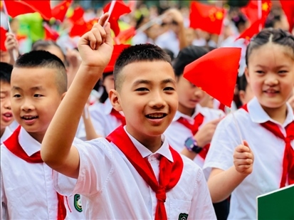 重慶樹人景瑞小學的孩子們參加以愛國為主題的“開學第一課”。(重慶樹人景瑞小學供圖)