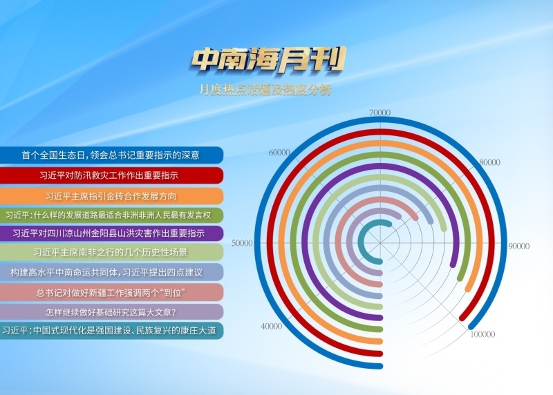 中國式現(xiàn)代化是強(qiáng)國建設(shè)、民族復(fù)興的康莊大道,康莊大道并不等于一馬平川。就像習(xí)近平總書記所強(qiáng)調(diào)的,“要把中國式現(xiàn)代化5個(gè)方面的中國特色變?yōu)槌晒?shí)踐,把鮮明特色變成獨(dú)特優(yōu)勢(shì),需要付出艱巨努力”。央視網(wǎng)“智聞”系統(tǒng)提取分析8月全網(wǎng)時(shí)政新聞熱點(diǎn)顯示,總書記對(duì)推進(jìn)中國式現(xiàn)代化的最新部署吸引全網(wǎng)目光。