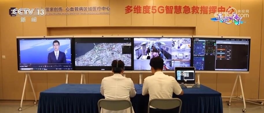 在大型5G移動急救復(fù)蘇單元工作時,院內(nèi)的5G急救指揮中心的電子大屏上,能夠?qū)崟r查看急救治療車內(nèi)的情況、患者監(jiān)護生命體征、車輛實時位置等信息,并進行實時的線上指導(dǎo)。