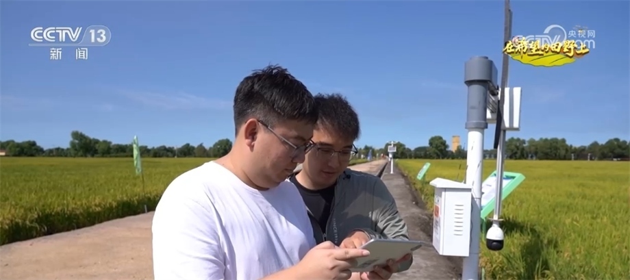 閆家崗農(nóng)場黨委書記 張雅南:咱們現(xiàn)在手里拿的這塊屏,就相當(dāng)于在我們田間地頭建設(shè)了一個(gè)農(nóng)業(yè)的智慧大腦。您看我手邊指的這一個(gè),下面就是視覺傳感器,它是做什么用的?它就是在水稻的不同生育期負(fù)責(zé)拍攝水稻生長的狀態(tài)。原來人工巡田,現(xiàn)在通過智慧大腦來巡田、來決策,所以更科學(xué)、更高效。