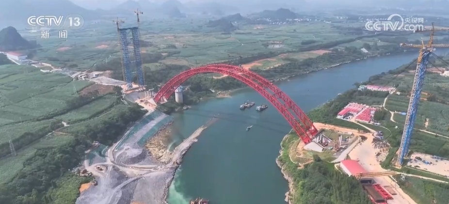 央視網(wǎng)消息:10月1日,廣西來(lái)賓西紅水河特大橋拱肋順利合龍,這標(biāo)志著項(xiàng)目建設(shè)取得突破性進(jìn)展,為下一步橋面鋪裝等工作打下堅(jiān)實(shí)基礎(chǔ)。